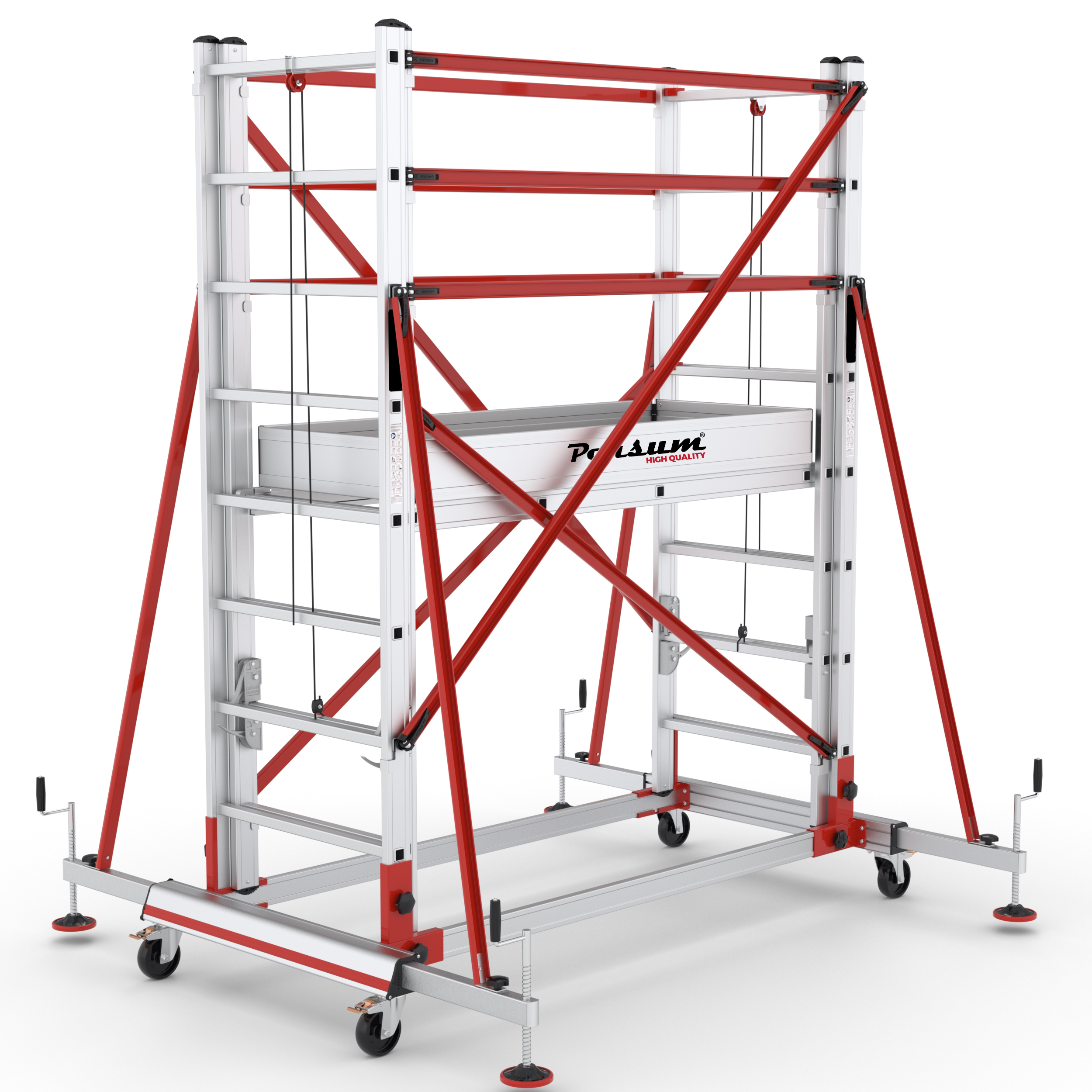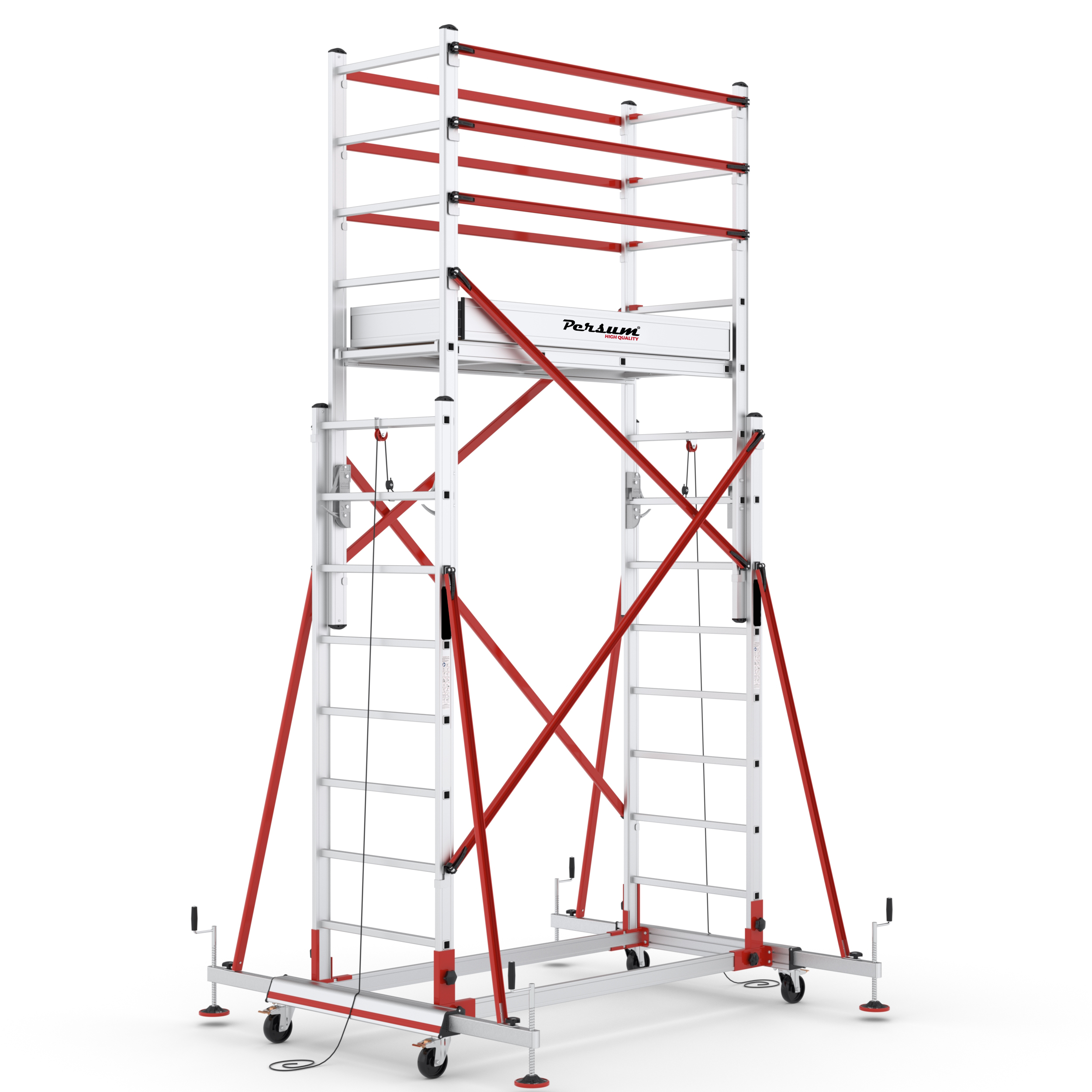 • Mecanismo de aluminio inyectado que regula la subida y bajada del andamio de forma fácil y segura.